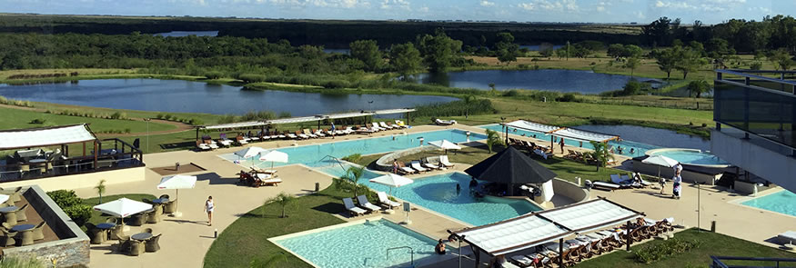 Con 156 habitaciones, el hotel combina termalismo, golf y un sistema all inclusive que lo posiciona como referente de la región. Dispone de ocho piscinas de agua termal con pozo propio, un campo de golf de 18 hoyos, cabalgatas, bicicletas, actividades recreativas y shows en vivo. Además, cuenta con pista de aterrizaje para avionetas, lo que otorga un diferencial en accesibilidad.