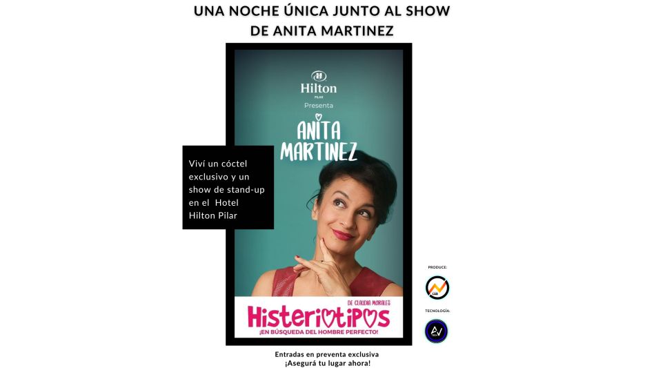 Entradas en www.hiltonpilar.ar/product/Anita-Martinez-Histeriotipos-COCKTAIL-EXCLUSIVO-&-STAND-UP-SHow