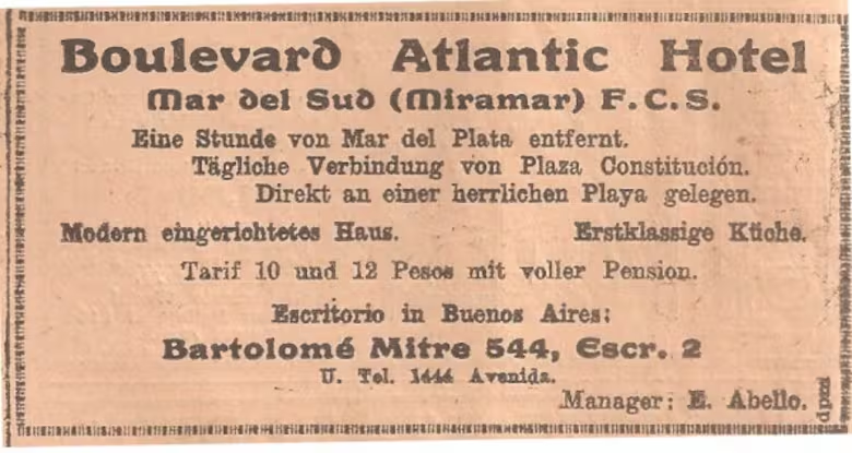 Algunos judíos pampistas se alojaron temporalmente en el Hotel Boulevard Atlántico, en Mar del Sud.