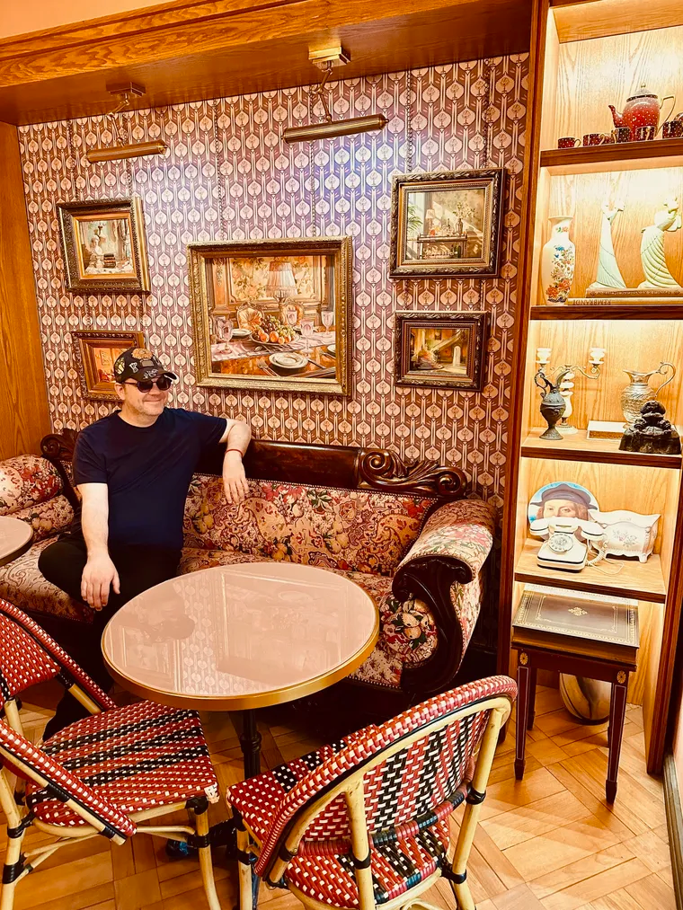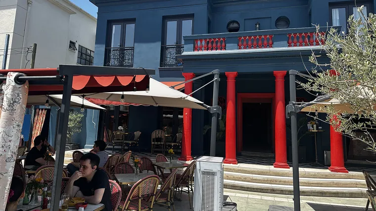 Ya su fachada color azul petróleo que contrasta con sus columnas rojas, llama la atención. El exterior es solo el introito de un exuberante cóctel: aromas variados del bistró se mezclan con los más vibrantes colores de los espacios y la deco: diferentes tonos de muchos colores, texturas y telas y una personalidad avasallante son sus características.