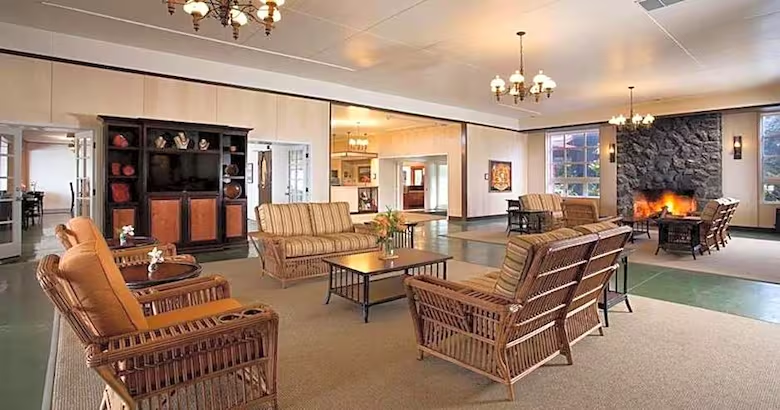 La historia del Volcano House se remonta a 1846, cuando se construyó una primera versión como refugio de madera y paja para los exploradores que se aventuraban a los bordes del cráter. Con los años, el hotel fue evolucionando, y en 1941 se inauguró el edificio actual, con diseño del arquitecto hawaiano Charles W. Dickey, quien combinó materiales locales con una estética funcional que permite una convivencia armónica con el entorno volcánico. La estructura de madera oscura y techos bajos se mimetiza con el paisaje, mientras que sus enormes ventanales orientados hacia el cráter dan sentido a cada ambiente.