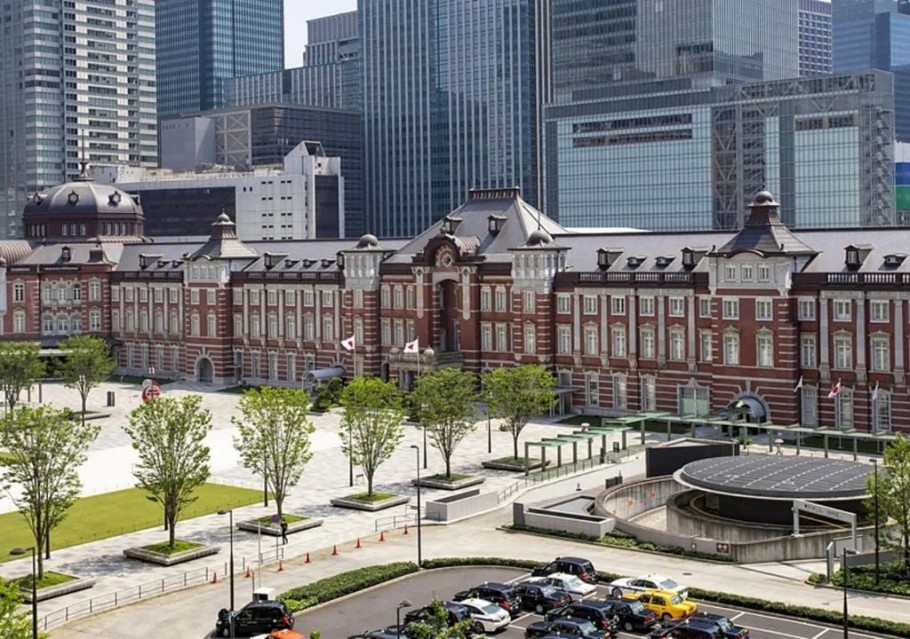 La estación de Tokio, con su fachada de ladrillo rojo y sus cúpulas simétricas, es un símbolo de la capital japonesa desde 1914. Concebida como un centro neurálgico del creciente sistema ferroviario nacional, ya contaba desde el inicio con un hotel integrado.