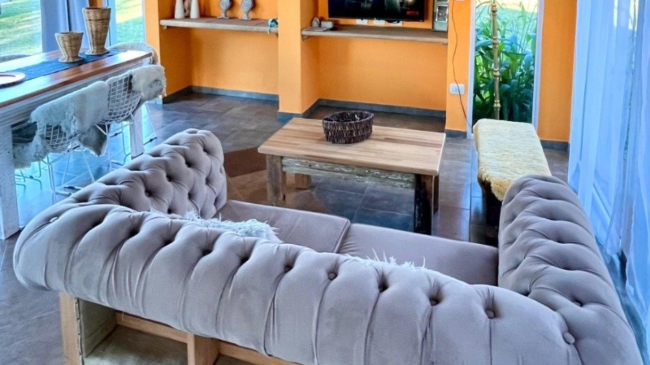 Una chacra de 90 m² que hace mención del estilo litoraleño. Cuenta con cocina, living comedor y dos habitaciones con baños en suite. Equipada con vajilla, electrodomésticos, aire acondicionado, calefacción, caja de seguridad, wifi, Tv y ropa blanca. Parrilla, piscina y mobiliario para disfrutar al aire libre como pérgolas, quinchos, reposeras y hamacas paraguayas.