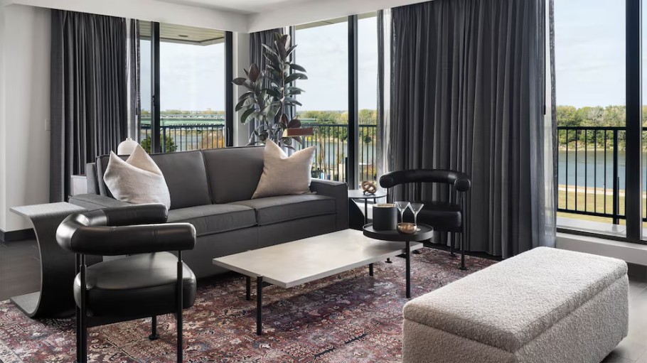 La sala de estar del hotel donde descansarán los campeones del mundo (Hotel Origin Kansas City)