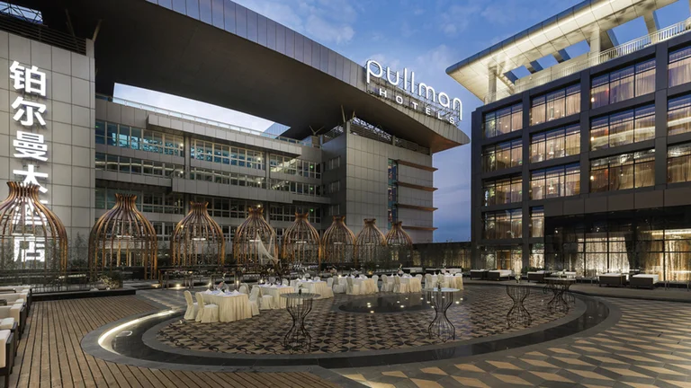 Un patio interno del Pullman Guangzhou Airport. (https://all.accor.com/)