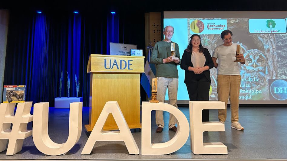 Llegamos al cierre con la premiación de los tres ganadores del certamen Protectores de la Naturaleza Premios Atahualpa Yupanqui, realizados por artesanos. También entregas de binoculares y libros de la Fundación Azara.