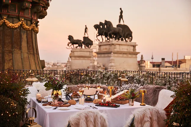 El Rosewood Villa Magna se viste de nieve y ambiente de estación suiza de esquí.