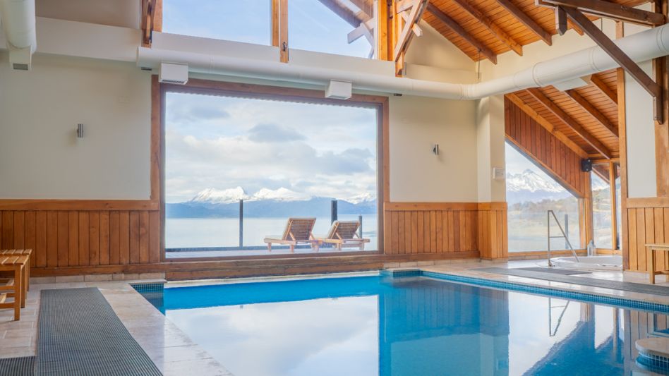 Entre sus servicios más destacados se encuentra el Spa del Fin del Mundo, que cuenta con un jacuzzi interno y dos externos, sala de relax, pool bar, sauna seco, piscina climatizada in-out, gimnasio con vistas al Canal y a las montañas, terapias de masajes y tratamientos de belleza.
